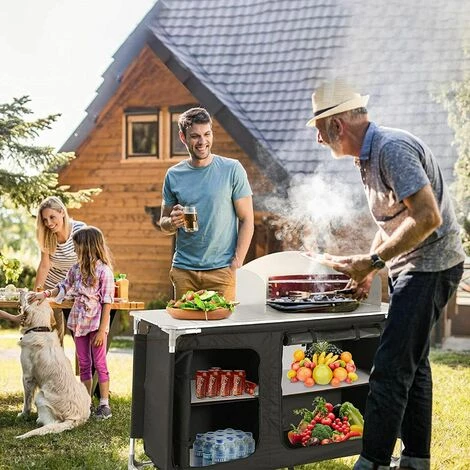 ★ Grand espace de rangement et évier flexible : Équipé d’un bassin d’eau, peut être utilisé pour laver des fruits, des légumes ou de la vaisselle, vous pouvez donc cuisiner librement à l’extérieur. La conversion flexible d’un bassin d’eau à une planche à découper peut améliorer votre expérience culinaire.