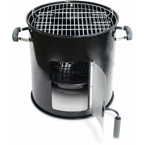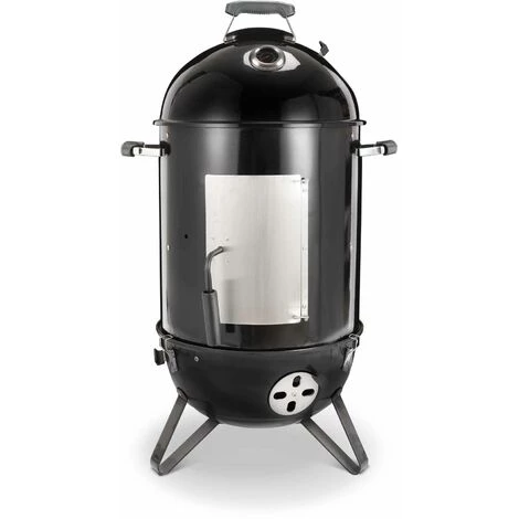 Le barbecue est divisé en 3 : la cuve à charbon pour la chaleur, le compartiment de fumage et le capot. La chambre de fumage se pose sur la cuve. Il y a également 2 grilles de cuissons, et 3 crochets (sur le capot). A vous d’opter soit pour le fumage à plat soit pour le fumage vertical. Les grilles de cuissons peuvent être utilisées en même temps afin de préparer des plats pour plusieurs personnes. Bien sûr, une cuisson traditionnelle de barbecue est également possible, en retirant le récipient avec le liquide pour que les aliments soient en contact direct avec la chaleur.