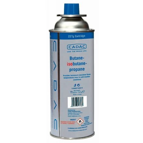 âą Cartouche de gaz 220g Ă©quipĂ©e d’une valve Ă bride SSN-29 contenant un mĂ©lange de gaz butane/propane.