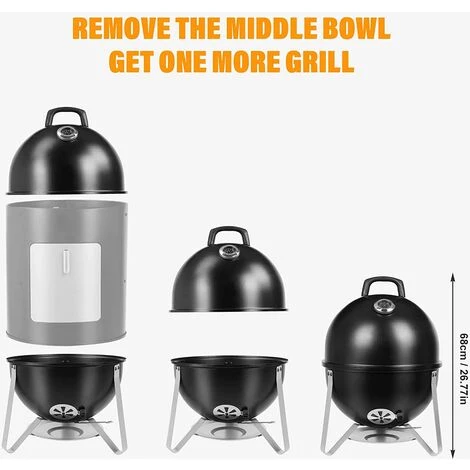 【Multifonction】Fumoir Smoker pour Barbecue au charbon de bois multifonctionnel 3 en 1, Fonction de grill, fumage, et cuisson afin de répondre à vos différents besoins. Le gril fumeur peut non seulement être utilisé comme fumoir avec deux grilles et un bol d’eau, mais également comme gril rond lorsque la partie centrale est retirée, notre produit peut répondre à vos différents besoins: en hiver, il peut également être utilisé comme un bol de feu pour réchauffer votre famille. 【Conception humanisée】Le thermomètre intégré facilite la vérification de la température interne du fumeur En utilisant l’évent réglable pour contrôler la circulation interne, le feu et la température peuvent être facilement ajustés. Grâce à la porte, vous pouvez surveiller l’état de cuisson des aliments à tout moment et recharger du charbon à tout moment. 【Grande capacité】la grille de cuisson à deux couches, de plus grande capacité, peut répondre aux besoins de 6 à 8 personnes en même temps et économiser du bois et du carbone, de la fumée, du gril et de la cuisson efficacement. Il y a 2 grilles de cuisson d’un diamètre de 43 cm dans le fumoir, ce qui signifie que le fumoir barbecue peut cuire plus d’aliments en même temps. La structure détachable est facile à assembler et à transporter, ce qui est très pratique. 【Grande porte et cendrier】équipé d’une porte: lorsque vous devez vérifier l’état des aliments sur le deuxième gril, ou lorsque le charbon de bois est sur le point de brûler et que vous devez ajouter du charbon de bois ou du bois, ouvrez simplement la porte, vous pouvez voir directement les aliments ou ajouter du carbone. Puisque le cendrier est utilisé, les cendres peuvent être ramassées et il est beaucoup plus facile à nettoyer après utilisation. 【Utilisations】Le tabagisme est une méthode populaire qui peut être utilisée pour conserver les aliments pendant de longues périodes ou pour leur donner un goût différent. Il peut être utilisé pour la fumée froide ou chaude. Cuit de différentes manières – fume / grille / cuit à la vapeur / cuit au four / braise / rôti, offre une grande flexibilité. Cela rend le fumeur parfait pour le camping, les pique-niques ou les barbecues et fumer lors de rassemblements en plein air en famille ou entre amis.