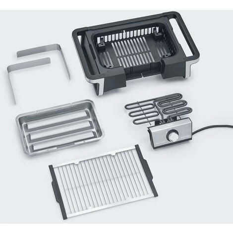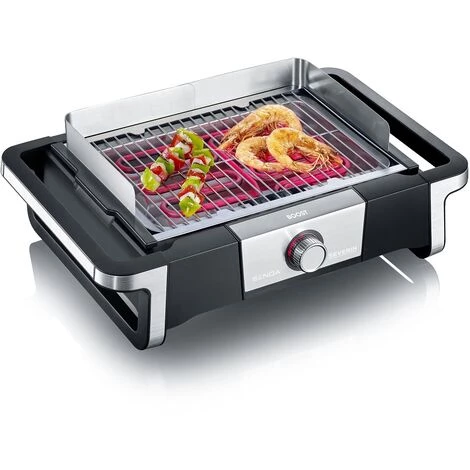 Barbecue électrique posable Boost Severin PG8113 dotée d’une grille inox de haute qualité et cuve avec réflecteur de chaleur, pour une cuisson encore plus rapide. BoostZone : zone double avec résistance hautement efficace pour une puissance maximale de 500° C. Thermostat réglable de 0 à 500° C en seulement 10 minutes. Bouton rotatif réglable avec rétro-éclairage LED 360° C. Moins de fumée et moins d’odeurs grâce au bac à eau, parfait pour une utilisation à l’extérieur comme à l’intérieur. Corps à revêtement SafeTouch : ne conduit pas la chaleur pour éviter tous risques de brûlures. Grille et résistance amovibles pour un nettoyage facile. Poignée de chaque côté de l’appareil pour des déplacements simplifiés.