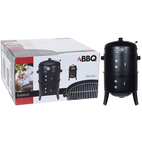 Baril fumant barbecue noir. Avec ce barbecue, vous pouvez cuisiner, griller et fumer. contrôle de la température avec la grille de ventilation. thermomètre inclus pour une mesure précise. Il comprend 3 plateaux intérieurs pour pouvoir cuisiner ou fumer. Il peut être cuit sur le gril sans couvercle. équipé d’un puits de carbone. diamètre total 47cm. diamètre de la grille: environ 40 cm. hauteur totale avec couvercle: 78cm. hauteur sans couvercle 60cm. matériau: acier peint. couleur noire. convient pour une utilisation avec du charbon de bois et des briquettes.