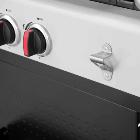Autres équipements : Tablettes latérales avec crochets, Roues dont 2 avec freins, Panier de stockage à l’avant, Décapsuleur intégré, Poignées et thermomètre intégrés au couvercle, Récupérateur de cendres