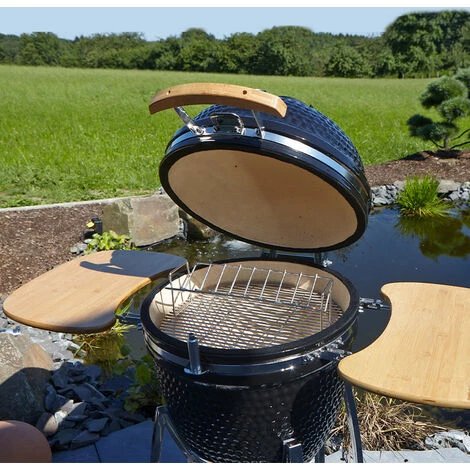 Incontournable en été, le barbecue à charbon est le barbecue préféré des français ! Le barbecue Kamadou, fonctionne comme un four traditionnel. Grâce à son couvercle, il permet une cuisson directe ou indirecte. Les grillades sont ainsi plus savoureuses, et la cuisson mieux maîtrisée. L’extérieur est en inox et l’intérieur en céramique ce qui permet d’accroître la puissance du feu par réflexion et maintient au chaud vos aliments. Il peut être utilisé comme un four, un grill ou un fumoir. Il possède sur les côtés deux tablettes rabattables en bois. La trappe de ventilation et la cheminée permettent un bon réglage du feu. Ce produit est livré avec le grill surélevé, la pierre coupe feu, un thermomètre et la housse de protection. Il fonctionne au bois et au charbon. Dimensions : (Hors tout) 130 x 212 x 73 cm – (Grill) 47 cm de diamètre Poids : 80 kg Livraison sous 10 jours ouvrés