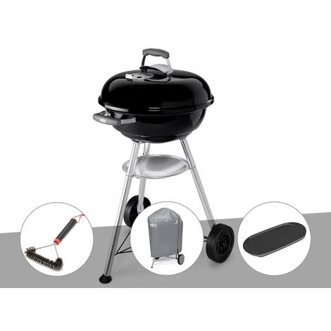 Barbecue charbon Weber Compact Kettle Ø 47 cmPour un hotdog, un hamberger ou des grillades de viande ou de légumes, le barbecue au charbon Compact Kettle de Weber vous aidera à réussir toutes vos recettes de barbecue. Facile à transporter dans le jardin avec ses roulettes et nettoyage simplifié avec son cendrier amovible en aluminium.