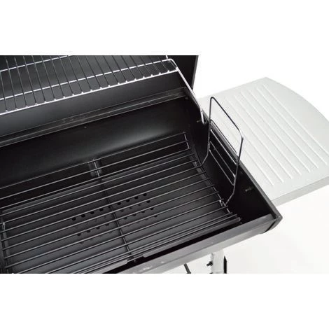 Le nettoyage de l’espace de cuisson s’effectue facilement grâce au grand bac de récupération des cendres. Les deux roues et la tablette latérale amovible permettent de transporter et ranger le barbecue de manière peu encombrante.