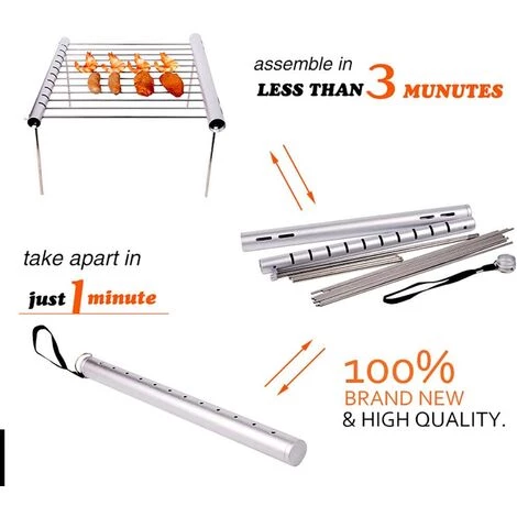 – Un gril de camp léger et portable en acier inoxydable, assez grand pour cuire de la nourriture pour 3 à 5 personnes au camping ou lors de la prochaine fête au hayon.