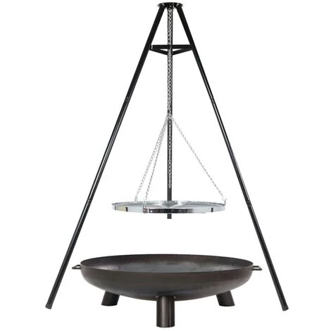 La livraison comprend un trépied, une chaîne et une grille de cuisson.