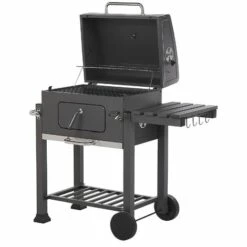 Caractéristiques clés: Crochets pour Torchons et Ustensiles, Support de cuisson supplémentaire , Pieds à roulettes pour un transport facile , Thermomètre pour contrôler la température de cuisson , Réservoir amovible pour la collecte des cendres