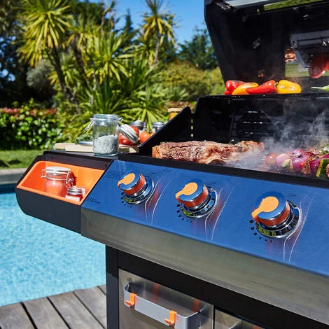 Une puissance surprenante : Facile à allumer, il dispose de 3 brûleurs munis de diffuseurs de chaleur. Ils permettent une meilleure répartition de la chaleur et de protéger les brûleurs des graisses. Conçus pour obtenir une cuisson parfaite ! Vous apprécierez son thermomètre pouvant indiquer une température jusqu’à 400°C. Très pratique et lisible, il est intégré sur son capot tout en inox afin de surveiller toutes vos cuissons, sans être obligé d’ouvrir son couvercle. Sa puissance de cuisson de 11,95 kW vous permettra de réaliser toutes vos saveurs.