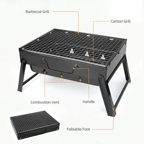 - Barbecue au charbon de bois pliable et portable: Pieds et poignée pliables avec : Le barbecue de camping est léger (1,14 kg) et portable. LTaille dépliée est (longueur x largeur x hauteur): 43 x 29 x 24 cm/16,92 x 11,41 x 9,44 pouces. LTaille pliée est : 35 x 27 x 5,8 cm (13,77 x 10,62 x 2,28 pouces), ce qui est facile à transporter n’importe où.