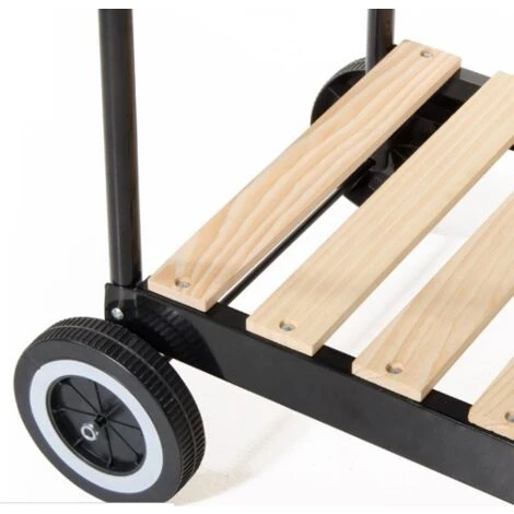 - Barbecue à charbon de bois en acier peint avec chariot à roulettes, 2 tablettes latérales et une tablette inférieure.