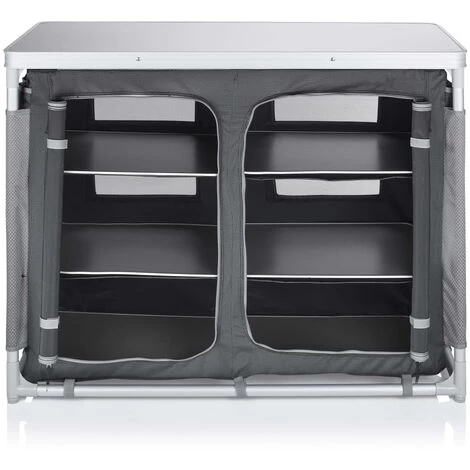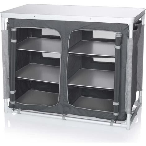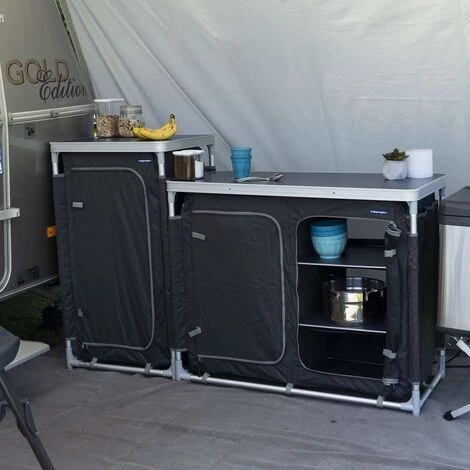 Cette cuisine d’extĂ©rieur Madrid de la marque Campart Travel permet de garder tout organisĂ© et Ă portĂ©e de main en camping.