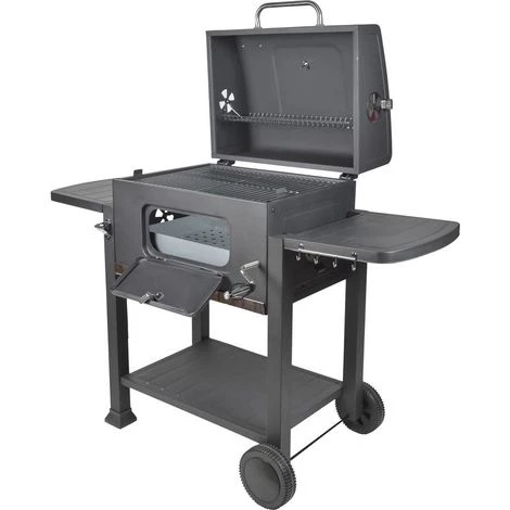 Entretenir son barbecue charbon de bois L’entretien d’un barbecue bois est très simple et rapide. Pour éviter d’avoir à frotter dans tous les sens votre barbecue lorsque la belle saison arrive, pensez à effectuer un nettoyage rapide de votre barbecue après chaque utilisation. Pas besoins de produits chers et/ou particuliers, vous aurez uniquement besoin d’eau savonneuse et d’une éponge propre. À savoir, les produits abrasifs sont à éviter : ils seraient susceptibles d’abîmer votre barbecue. Bien évidemment, il est préférable d’attendre que votre barbecue soit complètement refroidi avant d’entamer son nettoyage.Descriptif : Barbecue charbon de bois en acier noir L 137cm x W 69 cm x H 107.5cm Poignées et roulettes Grille incluse – Dim : 41.5 x 27 x 0.8.
