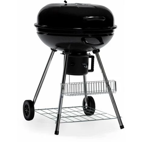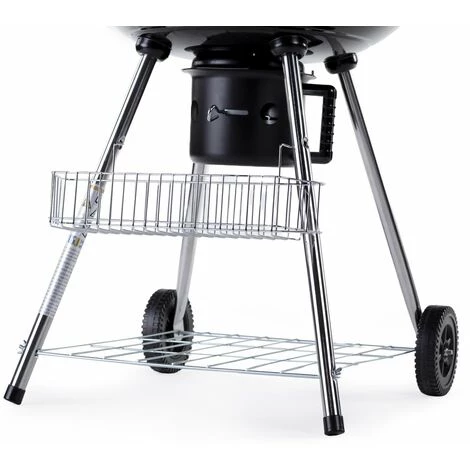 Faîtes des grillades cet été Le barbecue charbon de bois Midnight est un must pour cuisiner dans le jardin. Pour des moments conviviaux et chaleureux, pensez à faire un barbecue ! Invitez votre famille et vos amis, et réunissez-vous dans votre jardin, autour d’un barbecue festif. N’oubliez pas d’installez la table de jardin et de sortir les chaises de leur housse pour manger dehors! Le soleil se couche ? Pensez à allumer les éclairages de jardin pour une ambiance tamisée ! Un récupérateur de cendre amovible Le barbecue charbon Midnight est équipé d’un récupérateur de cendre amovible avec poignée. Un cendrier amovible vous permettra de vider votre barbecue simplement et sans risquer de mettre d’éparpiller les cendres du charbon partout. Un rangement pour condiments Utilisez votre barbecue charbon avec tous les accessoires indispensables ! Et quoi de plus pratique qu’un rangement en métal pour condiments ? Vous pourrez ainsi assaisonner et en relever le goût à loisir vos grillades en conservant vos épices à portée de main ! Cette étagère de rangement se fixe très simplement aux pieds du barbecue. Un barbecue charbon mobile Vous pourrez déplacer votre barbecue charbon de bois où vous le voulez ! Celui-ci est doté d’une paire de roues qui vous permettront de le déplacer très facilement. Comment nettoyer son barbecue charbon Votre barbercue charbon de bois doit être nettoyé de manière régulière, avant et après utilisation, afin d’éviter l’accumulation de graisses. Pensez également à vider son cendrier. Pour le nettoyer, vous pourrez utiliser une eau savonneuse (et vous munir de gants !) mais les éponges et nettoyants abrasifs sont à proscrire car ils pourraient endommager certaines pièces. Enfin, vérifier régulièrement que le récupérateur de cendre soit bien fixé et que le clapet de ventilation soit propre. Descriptif : – Barbecue charbon de bois – Grille de cuisson chromée + grille supérieure d’attente – Bac de rangement à suspendre – 2 roues de déplacement – Surface de cuisson : Dia.54 cm – Grille fond cuve : 38 cm – Dimensions cuve et couvercle : Dia.57 x 18 cm – Dimensions roues : Dia.15 cm – Épaisseur : 3.5 cm. Surface de cuisson : Dia.: 54 cm. Grille de cuisson : Dia.: 54 cm – Acier chromé. Cuve : Dia.57 x 18 cm – Acier. Couvercle : Dia.57.5 x 18 cm – Acier. Dimension : 68 x 58 x 90 cm. Hauteur de cuisson : 68 cm. Poids : 11 kg. Plus produit : – Bac de rangement – Roues. Colisage : 1 colis : – 0,625 x 0,258 x 0,635 m, 10,3 kg.