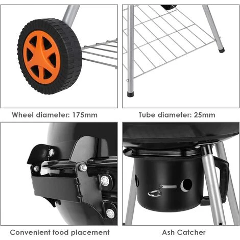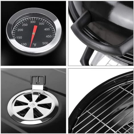 ★CONCEPTION INGÉNIEUSE: La ventilation chromée facilite l’accélération de la cuisson. Le cendrier barbecue rond au charbon de bois ne laissera pas tomber les cendres et protège votre jardin de la pollution. Avec de grandes roues, vous pouvez déplacer plus facilement le gril à charbon.