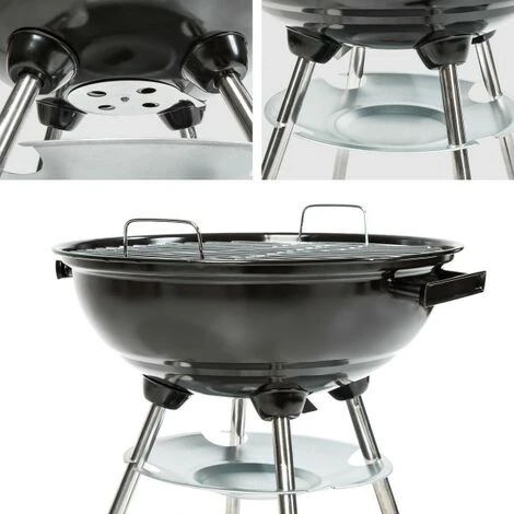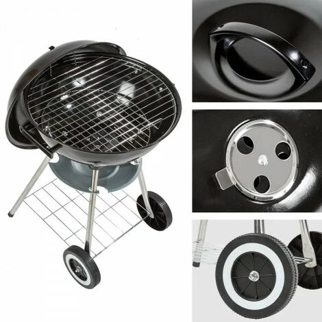 Notre barbecue au charbon de bois polyvalent est un incontournable pour tous les adeptes du barbecue. Il offre de nombreuses options. Poissons, viandes, légumes ou volaille, ce barbecue performant vous offrira de somptueux repas. Avec sa grille chromée Ø 41,5 cm, il est possible de réaliser sans problème un barbecue pour 6 personnes. Le barbecue est résistant à la chaleur et particulièrement facile à nettoyer. Il possède un régulateur de ventilation en bas et d’un couvercle avec tirant d’air en haut qui vous permet d’obtenir un feu indirect.