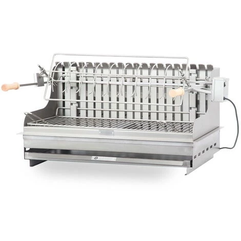 – Un foyer vertical avec un tournebroche, un moteur électrique force 10kg et une broche anglaise