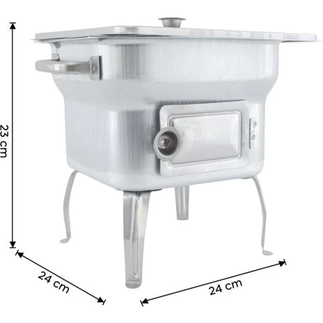 Fabriqué en tôle emboutie, il est équipé d’une porte pour insérer les braises, d’un couvercle et d’une petite casserole. Vous pourrez griller légumes, viandes et autres plats très facilement : la cuisson sera parfaite et vous aurez un encombrement très réduit sur votre balcon !