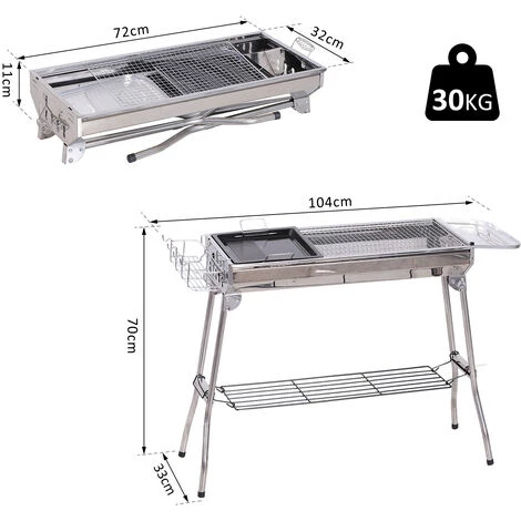 – Piétement pliable, barcecue compact : déplacement et rangement facile