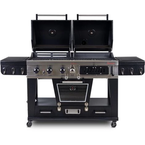 Saisissez vos viandes préférées sur votre barbecue au charbon de bois, avec unréglage des degrés de cuisson à six positions, une entrée d’air par l’avant et l’échappement par la cheminée à l’arrière. Grillez vos hamburgers ou vos brochettes sur votrebarbecue au gaz à trois brûleursde 50 000 BTU. Enfin, fumez du fromage ou du poisson dans votrefumoir électriqueanalogique à trois plateaux de 0,047 m3.