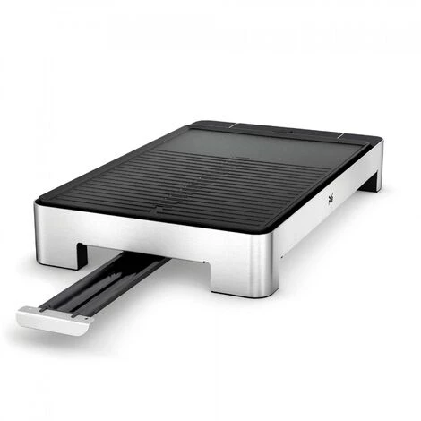 Le plancha grill électrique WMF LONO fabriqué en Cromargan®, avec sa grille plate à 1/3 et nervurée aux 2/3, est l’appareil idéal des amateurs de grillades saines de poissons et de légumes. La puissance de 2300 watts et le réglage variable de la température avec éclairage LED garantissent des résultats parfaits. La plaque grill en fonte d’aluminium de 27 x 41 cm s’enlève facilement et peut être nettoyée au lave-vaisselle. Le bac de récupération amovible des graisses est également lavable au lave-vaisselle.Les points forts :Cromargan® mat, Puissance 2300 Watts.Plaque en fonte d’aluminium avec revêtement anti-adhésif et élément chauffant intégré – lavable au lave-vaisselle.Grande surface de grill, plate et nervurée : environ 27 x 41 cm.Manipulation simple : mise en place et démontage de la grille par simple pression d’un bouton.Bac de récupération amovible, lavable au lave-vaisselle.