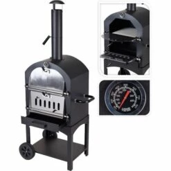 BBQ Barbecue à Charbon De Bois – Four à Pizza – Fumoir – 3 En 1 – Surface De Grillage 34 X 24 Cm –