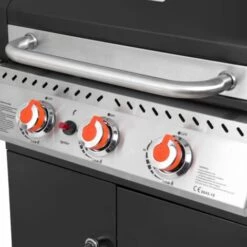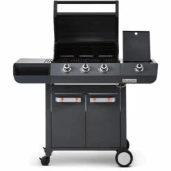 Brasero – Barbecue SPRING II 4 Feux – Surface De Cuisson Mixte – 1/2 Plaque Fonte – 1/2 Grille Fonte – 4 Brûleurs à Gaz – Puissance De 12,6 KW – Jusqu’à 12 Convives – Noir
