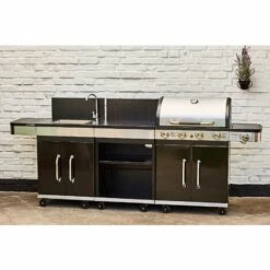 Barbecue Gaz – Grill Et Plancha – FIDGI 4 + Desserte + Evier – Cuisine D’extérieur – Cook’in Garden – Noir
