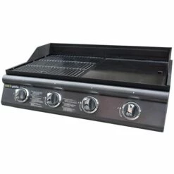 Barbecue Gaz 2 En 1 Fidgi – Grill Et Plancha – 4 Brûleurs – Thermomètre Capot – Puissance 14,5 Kw – Noir/Inox – Cook’In Garden