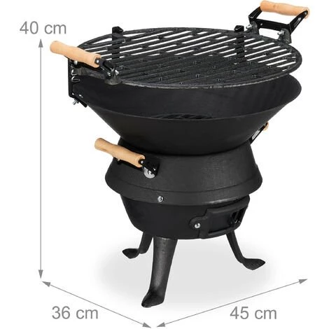 Le barbecue rustique offre un point de feu authentique grâce à la soucoupe en fonte et ses superbes poignées en bois. De belles soirées d’été en perspective. Faites griller de superbes saucisses, des steaks et des petits légumes sur la grande surface de 35cm du baril. Grâce à l’aération optimale dans la moitié inférieure du baril le charbon brûle bien. Ainsi vous n’aurez pas à attendre la braise trop longtemps. Mettez le grill en charbon sur la terrasse ou dans le jardin et en avant !