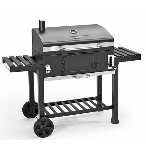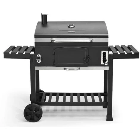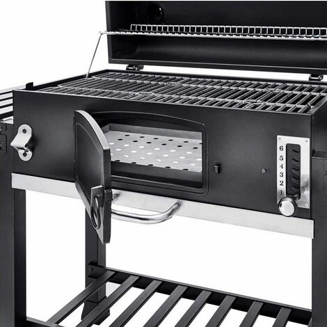 La grille de cuisson (2 piĂšces) en fonte de haute qualitĂ© assure une rĂ©partition fiable de la chaleur. Pour un rĂ©glage idĂ©al de la tempĂ©rature, la cuve Ă charbon de bois est rĂ©glable en hauteur sur 6 niveaux. Vous pouvez lire la tempĂ©rature de la chambre de cuisson Ă l’aide du thermomĂštre intĂ©grĂ© dans le couvercle. Pour un apport d’air optimal, deux soupapes d’aĂ©ration se trouvent sur les cĂŽtĂ©s de la chambre de cuisson.