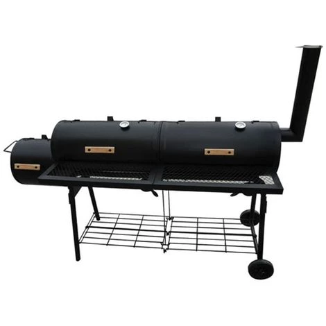 Ce barbecue à fumoir est une combinaison d’un barbecue traditionnel et d’un fumoir. Il vous permet de griller, de fumer, de rôtir et de garder vos plats au chaud. Dans le compartiment à feu, le bois qui couve produit de la chaleur et de la fumée qui est répartie uniformément dans le fumoir. Si vous vous en tenez à une seule façon de cuisiner, la boîte à feu séparée peut être utilisée pour maintenir la chaleur de votre nourriture déjà grillée. Le Nevada possède un compartiment à feu et deux chambres à fumoir. Viande, poisson, légumes, pizza et même du pain peuvent être préparés délicieusement dans le fumoir. Le goût de votre nourriture peut être influencé par votre choix de bois. Les plats peuvent être cuits à basse température, ce qui garantit que votre poisson et votre viande restent juteux et délicieux. Ce fumoir a deux compartiments de gril très spacieux. Une jauge de température vous permet de surveiller la température dans le fumoir. Une étagère supplémentaire pour ranger du bois supplémentaire se trouve en bas. Remarque : Nous vous recommandons d’utiliser un couvercle de barbecue (non inclus) pour le protéger contre les conditions météorologiques défavorables.
