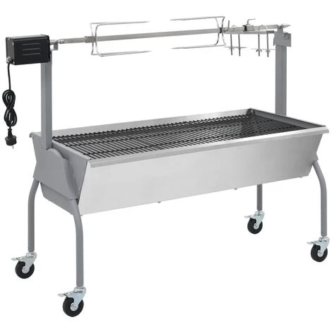 Notre rôtissoire de barbecue est idéal pour créer un festin en plein air pour votre famille et vos amis. Il fera grésiller votre expérience de cuisson en plein air, transformant efficacement votre cour arrière en une deuxième cuisine. Ce barbecue est très spacieux avec une grande grille et une rôtissoire automatique. Vous allez certainement rendre tous vos voisins jaloux lors de la cuisson du poulet, du poisson ou de l’agneau à la broche. La broche est alimentée par un moteur électrique pour assurer que votre viande soit bien cuite. La hauteur de la rôtissoire est réglable. Les quatre roues (avec freins) facilitent le transport et le déplacement. Rôtissez comme des professionnels dans votre propre cour arrière avec notre rôtissoire de barbecue !