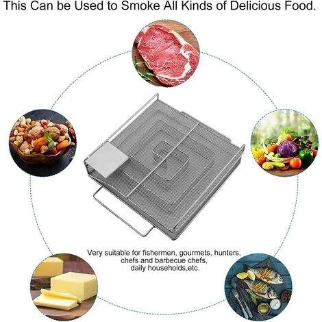 VERSAILLESFR Générateur De Fumée Froide, Enérateur De Fumée Froide En Acier Inoxydable, Générateur De Fumée Professionnel Avec Brosse De Nettoyage Et Crochet, Convient à Tous Les Barbecues(15x15x4cm) -Versailles