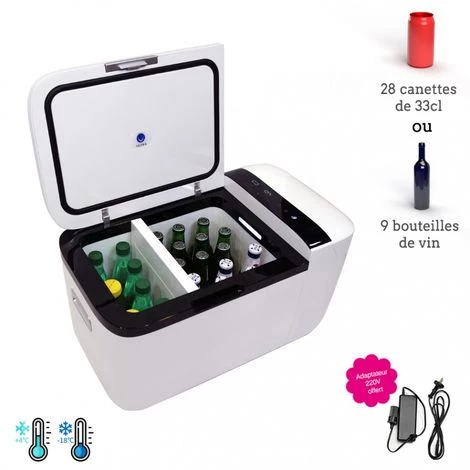 – Glacière dotée d’un compresseur : la même technologie que votre frigo- Maintient une température de +10°C à -18°C quelque soit la température extérieure- Capacité de 20 litres- Peut être utilisée en mono ou double compartiment (réfrigération et congélation)- Fonctionne sur allume cigare (12V/24V DC) et prise classique 220V AC- Compacte et facile à transporter- Commande via l’écran digital tactile ou appli mobile- Eclairage LED intérieur