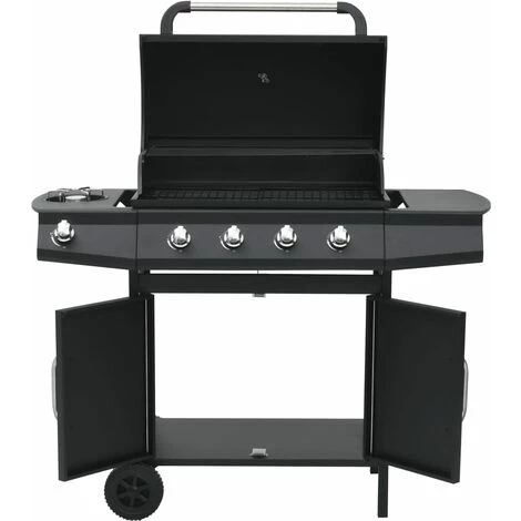 Le gril à gaz dispose d’un design élégant et fonctionnel. Il a une grande surface de cuisson et une hotte robuste avec un thermomètre intégré qui affiche avec précision la température de cuisson. Une table d’appoint offre un espace de travail supplémentaire pour faire des sauces ou vos plats favoris. Un récipient d’égouttage à graisse amovible est également inclus et est facile à nettoyer.