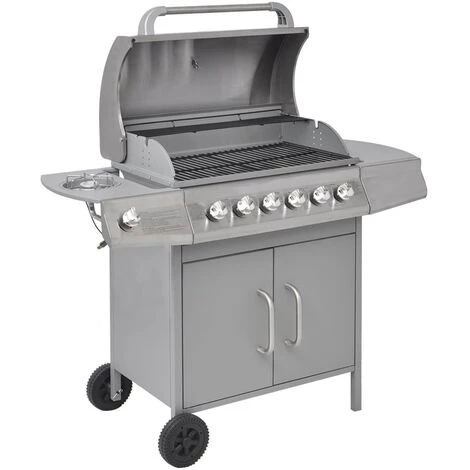 Ce barbecue à gaz est dotée de 6 grandes dans les zones de cuissonet 1 zone de cuisson latérale dans les zones de cuisson et est idéal pour créer une fête en plein air pour votre famille et vos amis. Il vous donnera une expérience de cuisson en plein air magnifique et transformera efficacement votre cour arrière en une seconde cuisine ! Le gril à gaz dispose d’un design élégant et fonctionnel. Il a une grande surface de cuisson et une hotte robuste avec un thermomètre intégré qui affiche avec précision la température de cuisson. Une table d’appoint offre un espace de travail supplémentaire pour faire des sauces ou vos plats favoris. Un récipient d’égouttage à graisse amovible est également inclus et est facile à nettoyer. Fabriqué en matériaux résistants, le gril est très durable. L’armoire dessous fournit un grand espace pour ranger les accessoires de cuisine et les ustensiles. Grace aux 2 roulettes robustes, le gril est facile à déplacer. La livraison comprend également une housse de barbecue pour protéger le gril contre la pluie et la poussière. Pour connecter le barbecue à la bouteille à gaz, un tuyau de gaz et un régulateur de pression approprié sont requis, mais ils ne sont pas inclus dans la livraison.